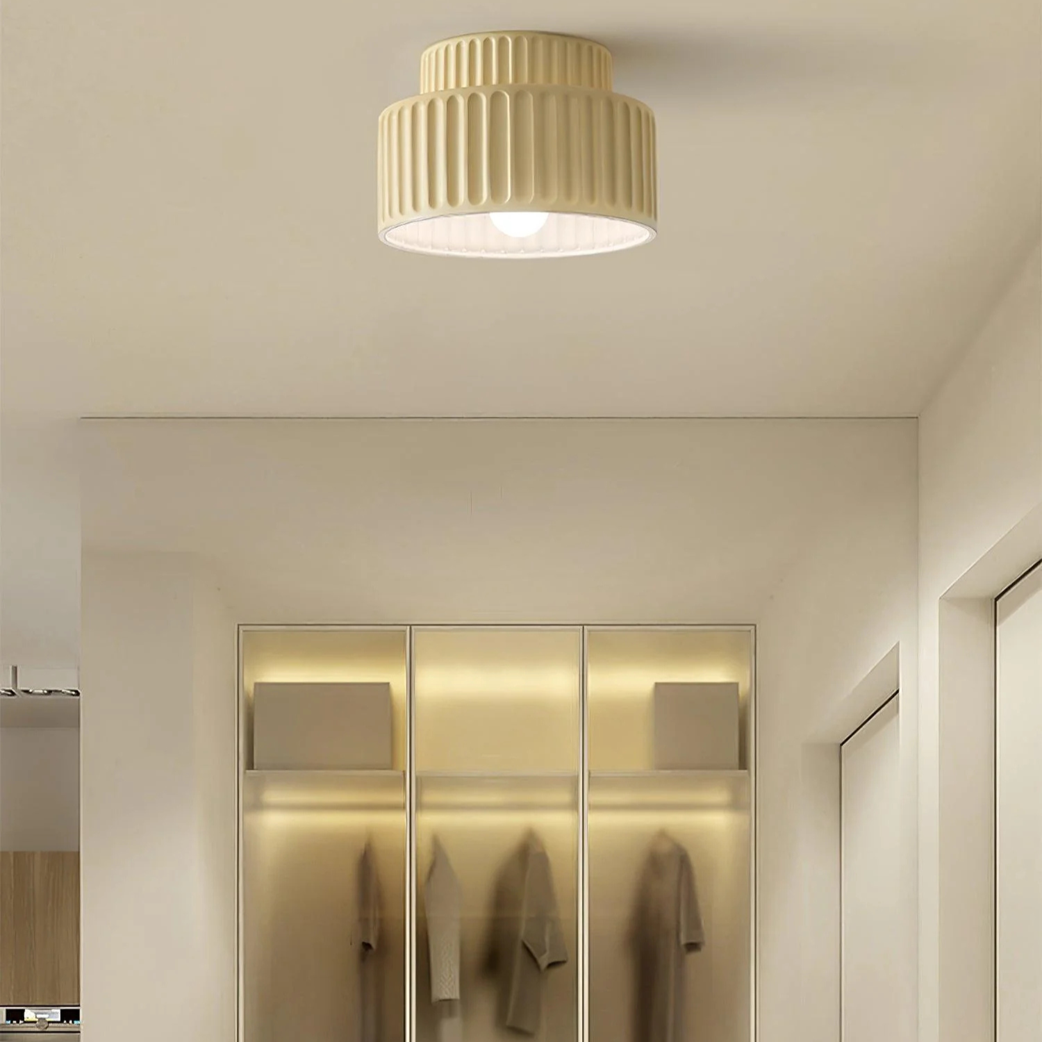 Inspired by modern architecture and Japandi calm, Ribbed Ceiling Lamp exudes a quiet luxury that elevates any ceiling. Its ribbed texture and warm, diffused glow create a harmonious balance between form and atmosphere. Perfect for minimalist interiors seeking character and refined presence.
